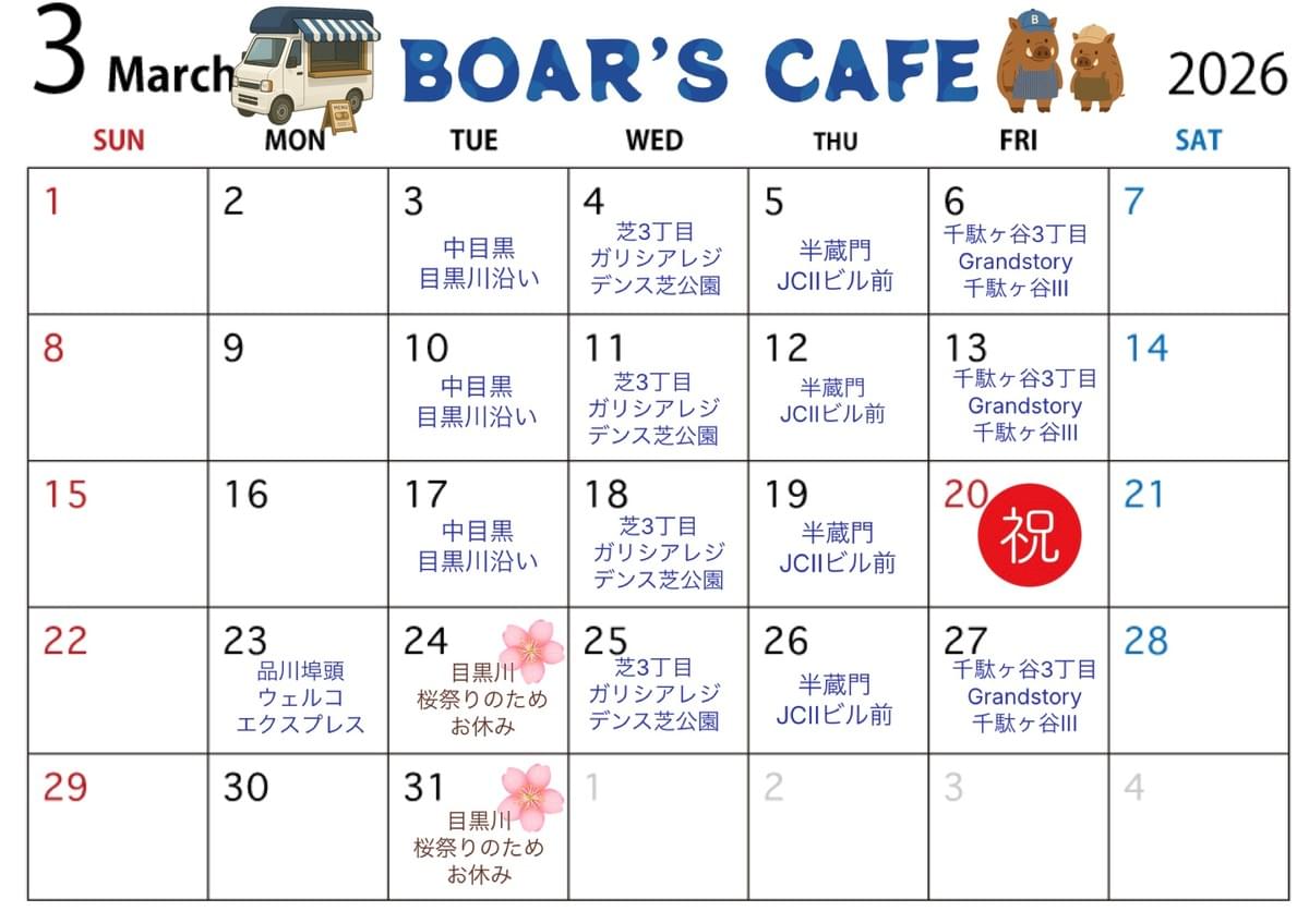 ※祝日の出店予定はございません。