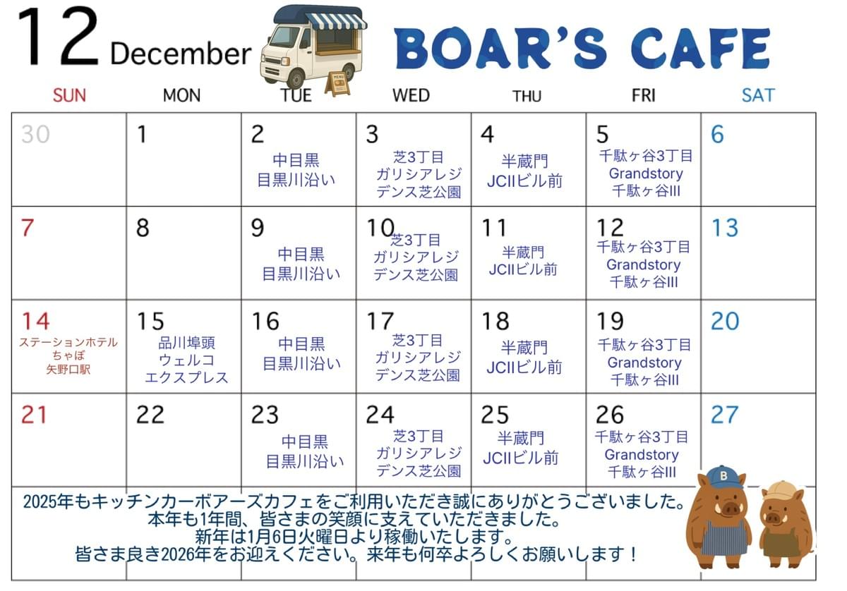 ※祝日の出店予定はございません。