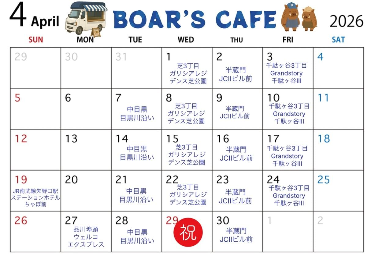 ※祝日の出店予定はございません。